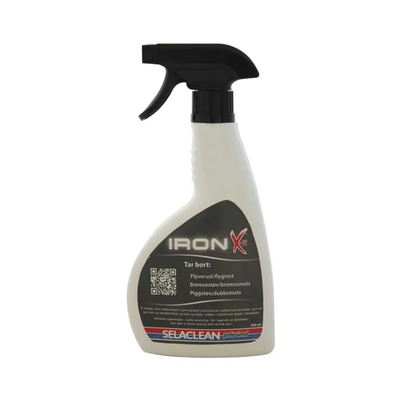 Metallpartikkelfjerner inneholder en kjemisk komponent som reagerer spesifikt med jernoksid og jernpartikler. Denne reaksjonen vises som en fargeendring til lilla. Vanlig felgrens fjerner generelt smuss og løst bremsestøv, men løser ikke opp jernpartikler som har bundet seg kjemisk til overflaten. For grundig dekontaminering trenger du en metallpartikkelfjerner.